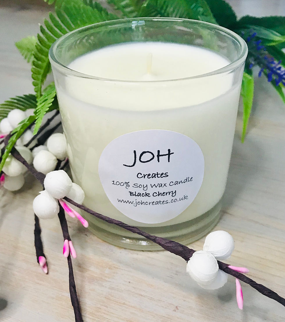 Black Cherry 100% Soy Wax & Essential Oils Candle -250ml Glass Container